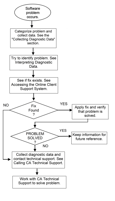 For a summary of the procedures you should follow if you have a problem with a CA software product, see the following flowchart. Each of these procedures is detailed on the following pages.