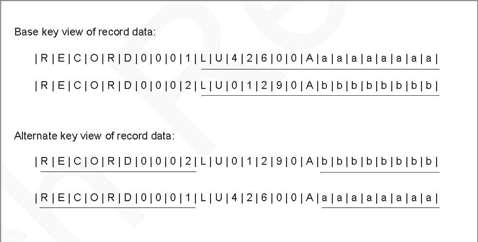 However, when viewed from the perspective of the alternate index, the order of the records on the UDB has nothing to do with the value of the base key; as far as the alternate index is concerned the UDB is arranged in ascending order of the alternate keys of the various records on the file. As a result, when accessing records via the alternate index, the order becomes:
