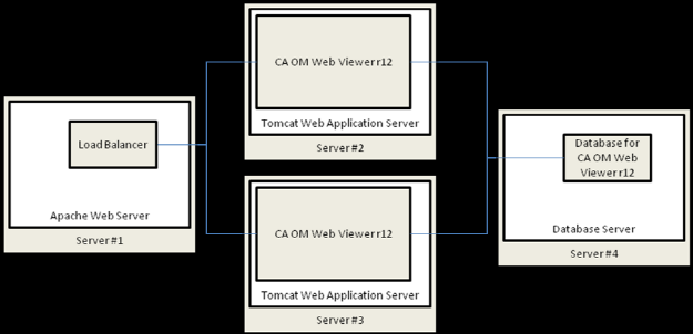 With multiple instances of CA OM Web Viewer, you can deploy another server as a load balancer to dispatch requests.