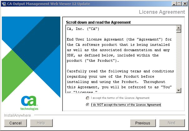 Updating CA Output Management Web Viewer Version 12 (or later) Using the Update Installer › Installation Using the GUI Wizard