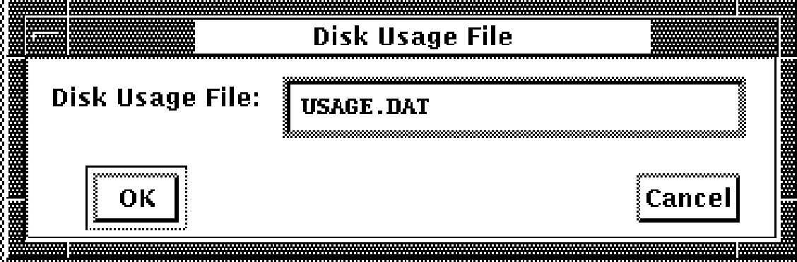 To select a disk use file, release on the Disk Usage... File menu item. The dialog box shown in the following figure is displayed.