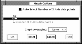 The Auto Select Number of X Axis data points button is used to have the Performance Manager choose a value that results in an even time interval to be represented by each data point. When you disable this button, you can specify the number of X Axis data points to plot across a graph.