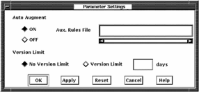 When auto augment is set on, the dialog box lets you enter the file specification of the compiled auxiliary rules file.