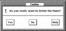 Click a panel name to select a panel. Pull down the Panel menu and click the Delete menu item. The following message box is displayed, as shown in the following screen: