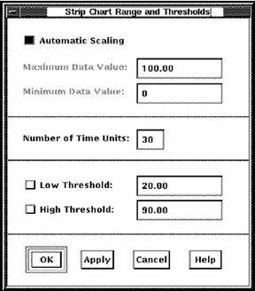 The Strip Chart Range and Thresholds dialog lets you do the following actions: