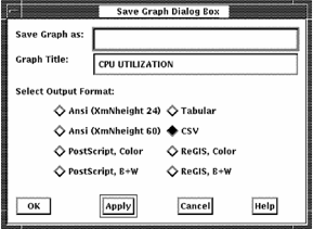The Performance Manager Save Graph or Save Pie dialog box is displayed, as shown in the following screen: