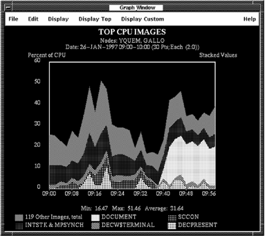 The graph window is updated with the first graph in the list indicated by the major category. An exception to this is switching between the Top User and Top Image categories, which causes the same graph metric to be displayed.