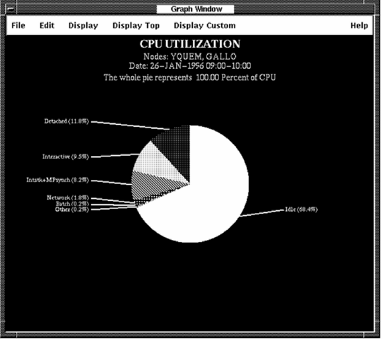 Specifies that the display is to be a pie chart. A pie chart produces a slice for each item, using size to depict average units of measure over the specified time period. When pie charts are displayed, stack and line mode toggle buttons do not affect the display.