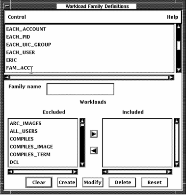 Performance Manager displays the Workload Family Definitions dialog box, as shown in the following screen: