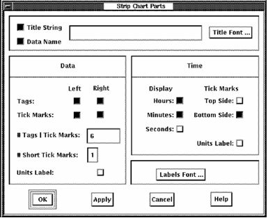 The Strip Chart Parts dialog lets you specify the following attributes: