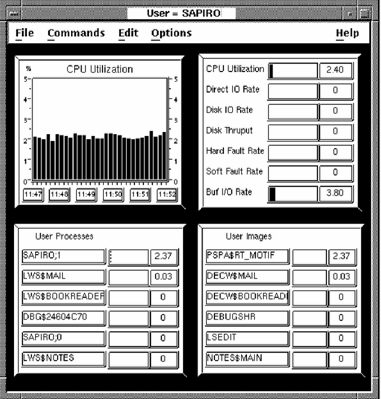 For strip charts, digital meters, and bar graphs with one or more different metrics displayed (List of Metrics as the type), you can now launch the selected panel by double-clicking on the instrument title. For bar graphs that display multiple instances of a metric, for example, a bar graph of the CPU utilization for the top 7 users, you can double-click an instance identified by user name and have that name passed to the launched panel. The launched panel can then filter its displayed metrics based on the specific user.