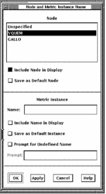 The Node and Metric Instance Name dialog lets you perform the following actions: