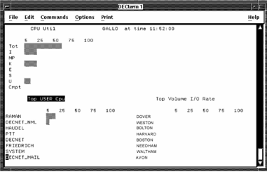 The Process Statistics and Device Statistics sections can be updated with a new set of metrics. The title of the currently selected section is in reverse video. Press KP3 to select a different section.