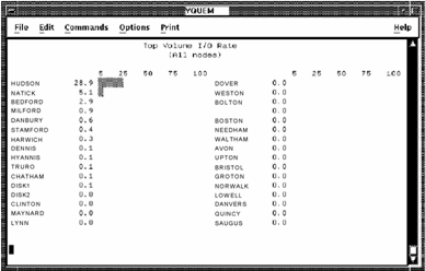 Press KP6 (to scroll through Disk keys and KP9) to scroll through disk metrics. To return to the multi-node display, press KP0.
