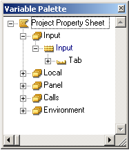 In the following steps, you add the FIELDS/Tab field to the Input variable in the Input variable group. The value of this Tab field specifies which tab of the property sheet to display.
