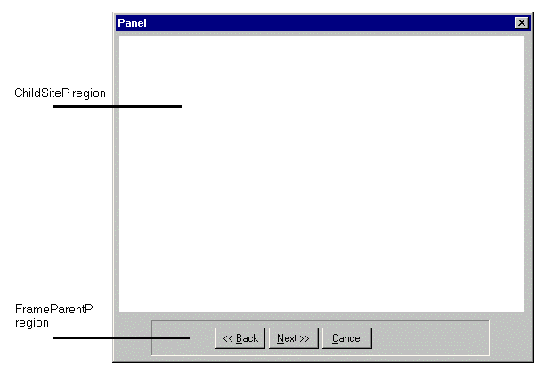 When you inherit from the pattern UISTYLE/FrameWizard, the panel scoped by it has a child site in which the child panels of the wizard are displayed.