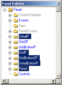 - In the Panel Palette, select DetailP, GridP, GridButtonP, DetailButtonP, and Panel:
