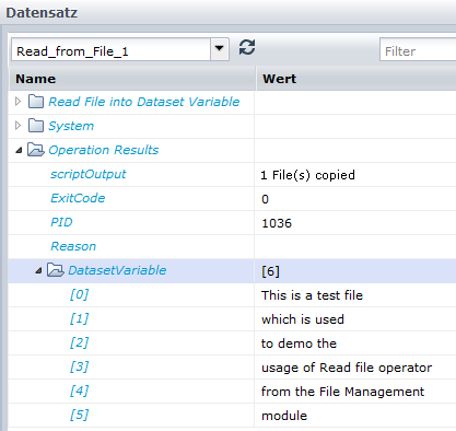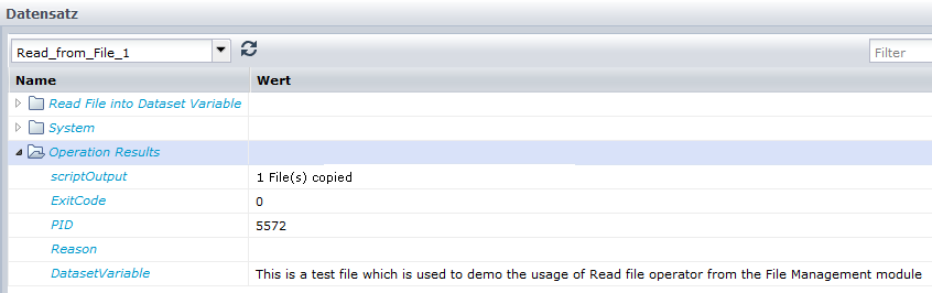 Der Dateiinhalt wird im Datensatz "DataRead" und nicht im Systemdatensatz gespeichert, wie in der folgenden Abbildung dargestellt: