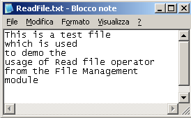 Questo esempio consente di eseguire la lettura da un file denominato ReadFile.txt. Il contenuto del file è il seguente: