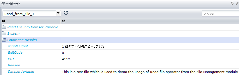 以下の図で示されるように、ファイル コンテンツはシステム データセットではなく DataRead データセットに保存されます: