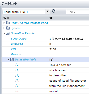 以下の図で示されるように、ファイル コンテンツが配列として使用可能です。