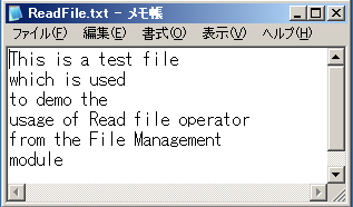 この例では、ReadFile.txt という名前のファイルから読み取ります。 ファイルのコンテンツは以下のとおりです。