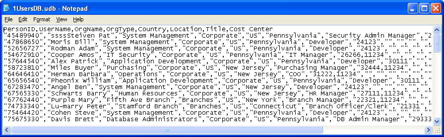 The first row in the entity file must be a header row. Each subsequent row represents a single user, where the row contains the following fields: