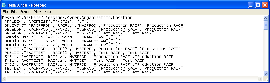 The first row in the entity file must be a header row. Each subsequent row represents a single resource and contains the following fields, where a combination of Resource Name 1, 2, and 3 is the key and is assumed to be unique: