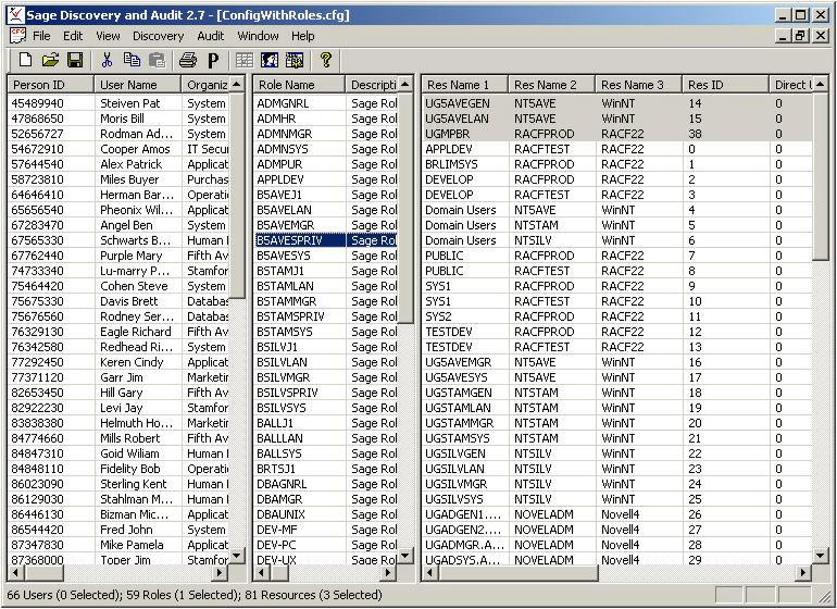The following is a typical results window: Selected role on which results are based are highlighted. Closely matching resources are marked in Gray.