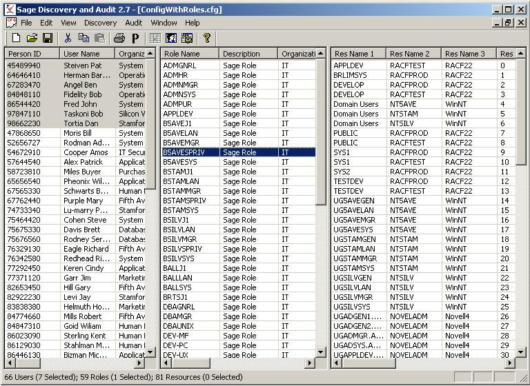The following is a typical results window. Closely matching user are marked in Gray. Selected role on which results are based is highlighted.