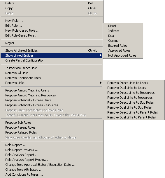 The following Roles Panel right-click controls are available: