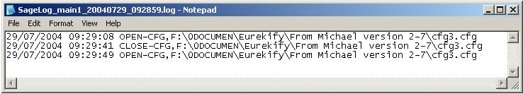 To activate the Log window, choose View, Log on the menu bar. A window such as the following opens: