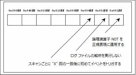 正規表現の評価に NOT 論理演算子を適用します。 このフラグを有効にすると、一致した正規表現は false と評価され、結果として、トラップは送信されず、アクションも実行されません。 正規表現に一致しないすべてのエントリは true と評価され、結果としてトラップが送信され、指定された任意のアクションが実行されます。