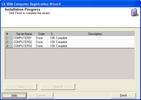 When the registration process completes, click Finish and the final dialog tells you how many computers were successfully registered.