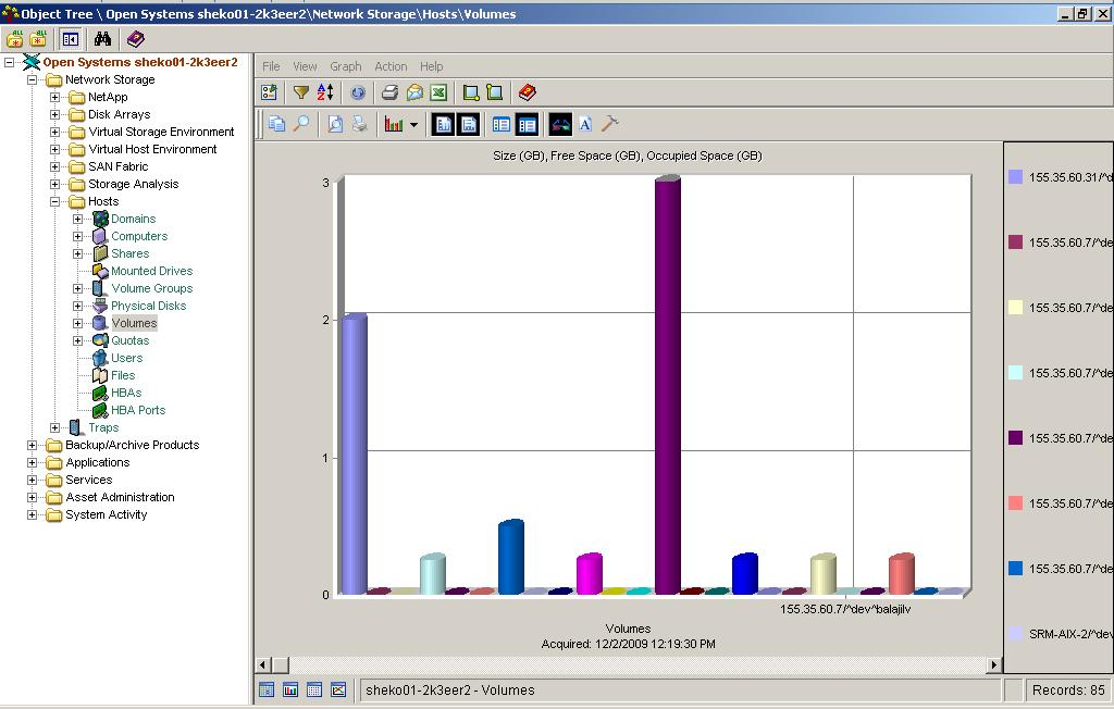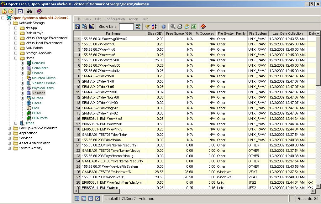 When you select an object from the Object Tree, CA SRM displays the object according to the view currently set for it. The following example shows the Volumes table: