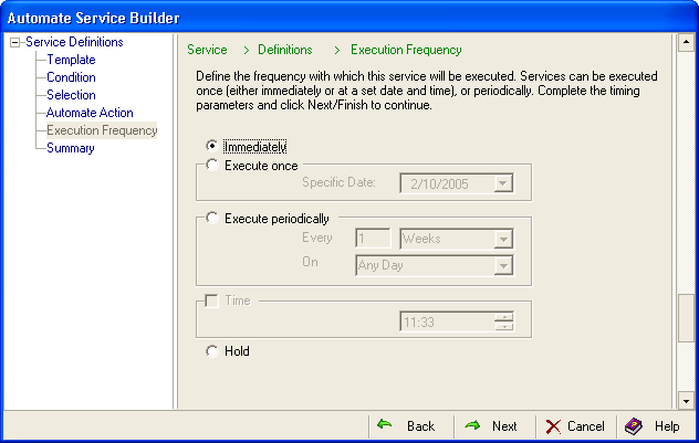 This section describes how to create Automate services using the Service Builder Wizard. The Service Builder Wizard contains predefined sets of sample services. After completing the configuration steps, the automate service is ready to use. If you want to tailor a service, use the Automate Service Builder Wizard to customize it.
