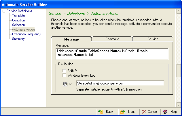 The following example shows you how to notify yourself by e-mail when Oracle tablespaces are more than 70 percent occupied. To do this, follow these steps: