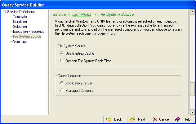 You can now create any file query using attributes appearing in the fast scan database (FSDB) from a previously scanned or updated FSDB. Without a scan, the query must access the file system for the missing attributes. To avoid this, an option to execute a file search from FSDB is now included in the query definition dialog: