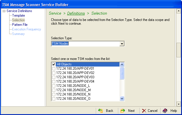 - Select TSM Nodes from the Selection Type drop-down list and check the boxes next to the objects that you want to scan for failures:
