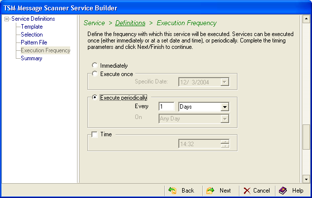 - In the TSM Client Messages Scanning dialog enter a service name in the Name field. Optionally, enter a description of the service. Click OK.