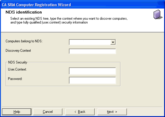 From the Security Scheme dialog, indicate whether the NetWare computers that you want to register belong to a security NDS (Novell Directory Services).