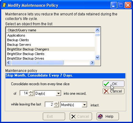 You can modify the maintenance policy of an object to control the data consolidation and retention of that object.