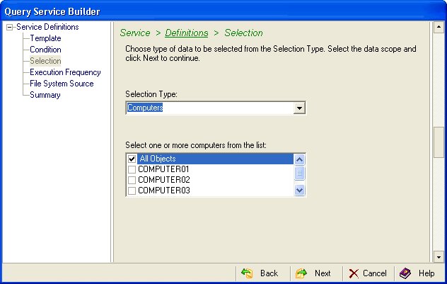 - Select Computers from the Selection Type drop-down list and check All Objects. Click Next: