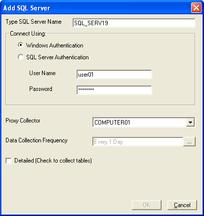 Windows Authentication—The data collection uses the access parameters defined for the domain on which the SQL server is running.
