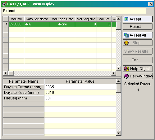 This example shows the dialog that displays when you select the Extend action: