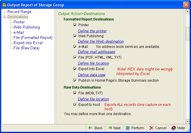When you select Destinations in the Output Action dialog you can indicate where you want a report to be published, as shown in the following sample: