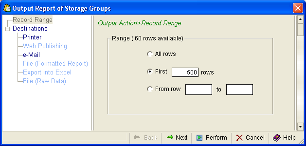 icon from the toolbar of the object view. This will give you the following Output Action dialog:
