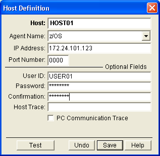 The Host Definition dialog opens, as shown in the following sample: