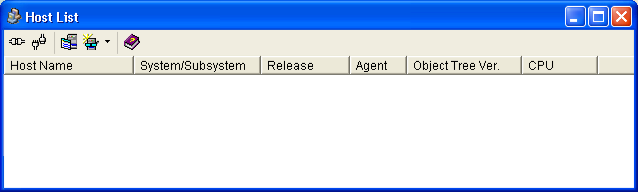 in the toolbar at the top of the Main Window of the Windows Client. If no hosts have been defined, then the Host List dialog will be empty, as shown in the following sample: