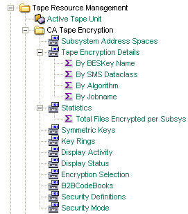 - Expand the Tape Resource Management folder to display the CA Tape Encryption folder and, in turn, expand it to display the CA Tape Encryption objects, as shown in the following sample: